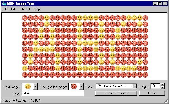 使用MSN进行聊天的朋友越来越多了,但不知你在聊天时,有没有觉得MSN所提供的表情符号不好用呢?试试MSNImageText这个工具吧!它可以让你把MSN中提供的表情符号进行有趣的结合,只需输入简单的文字,就可以产生酷酷的文字图像,让你在聊天时感觉更加生动有趣。